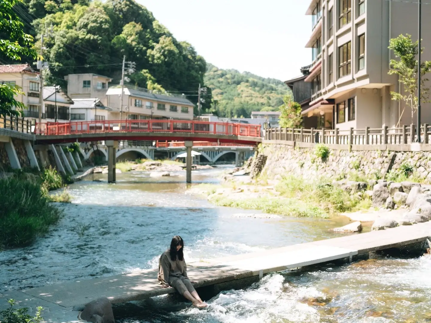 沿著音信川流淌的光影與水聲, 展開一幅靜謐嶄新湯之鄉風景。